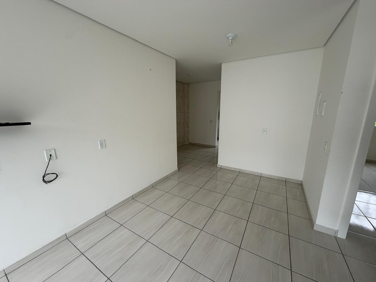 Apartamento com dois quartos, sala, cozinha, lavanderia com churrasqueira, banheiro social, vaga de estacionamento sem cobertura.